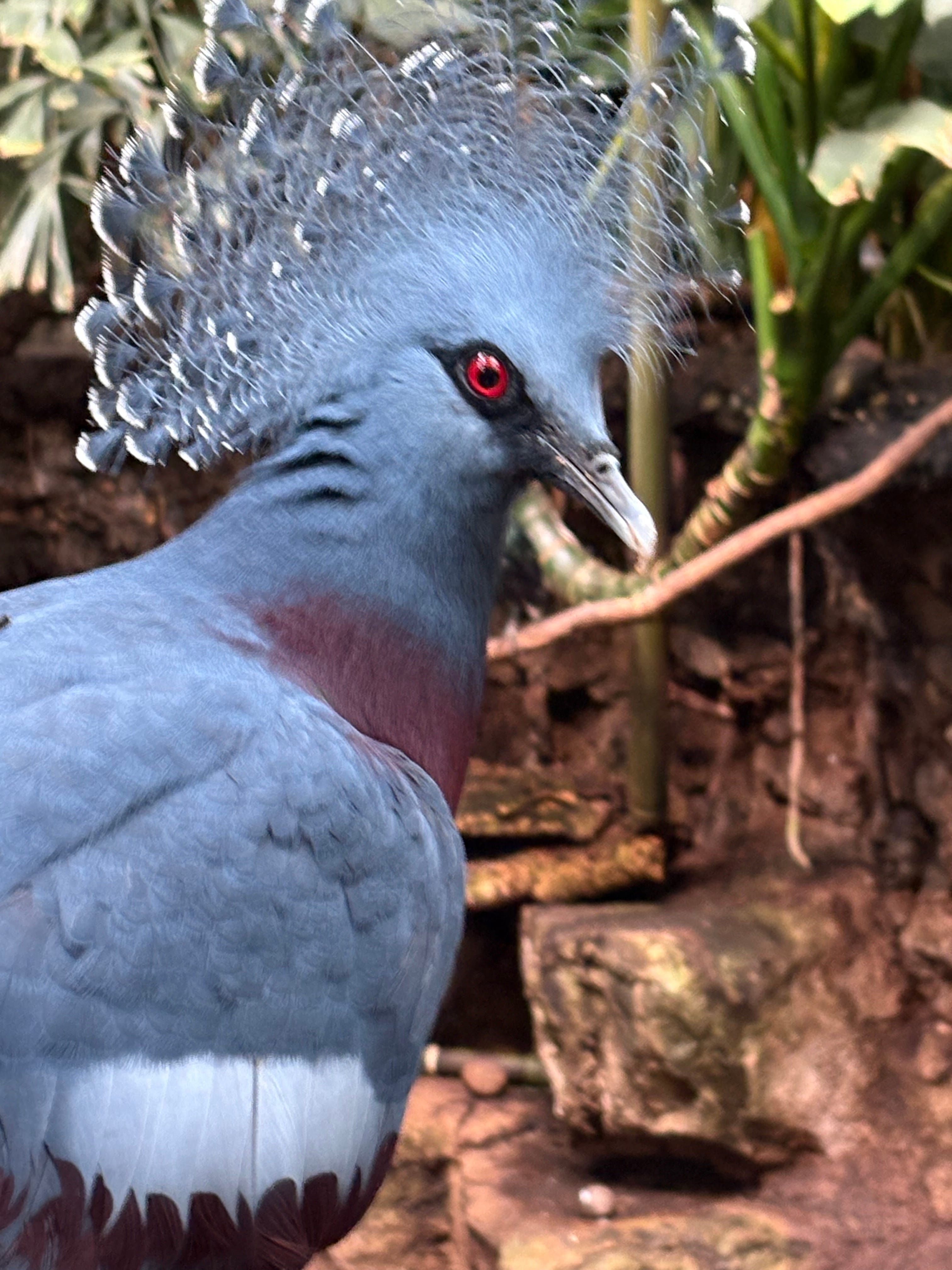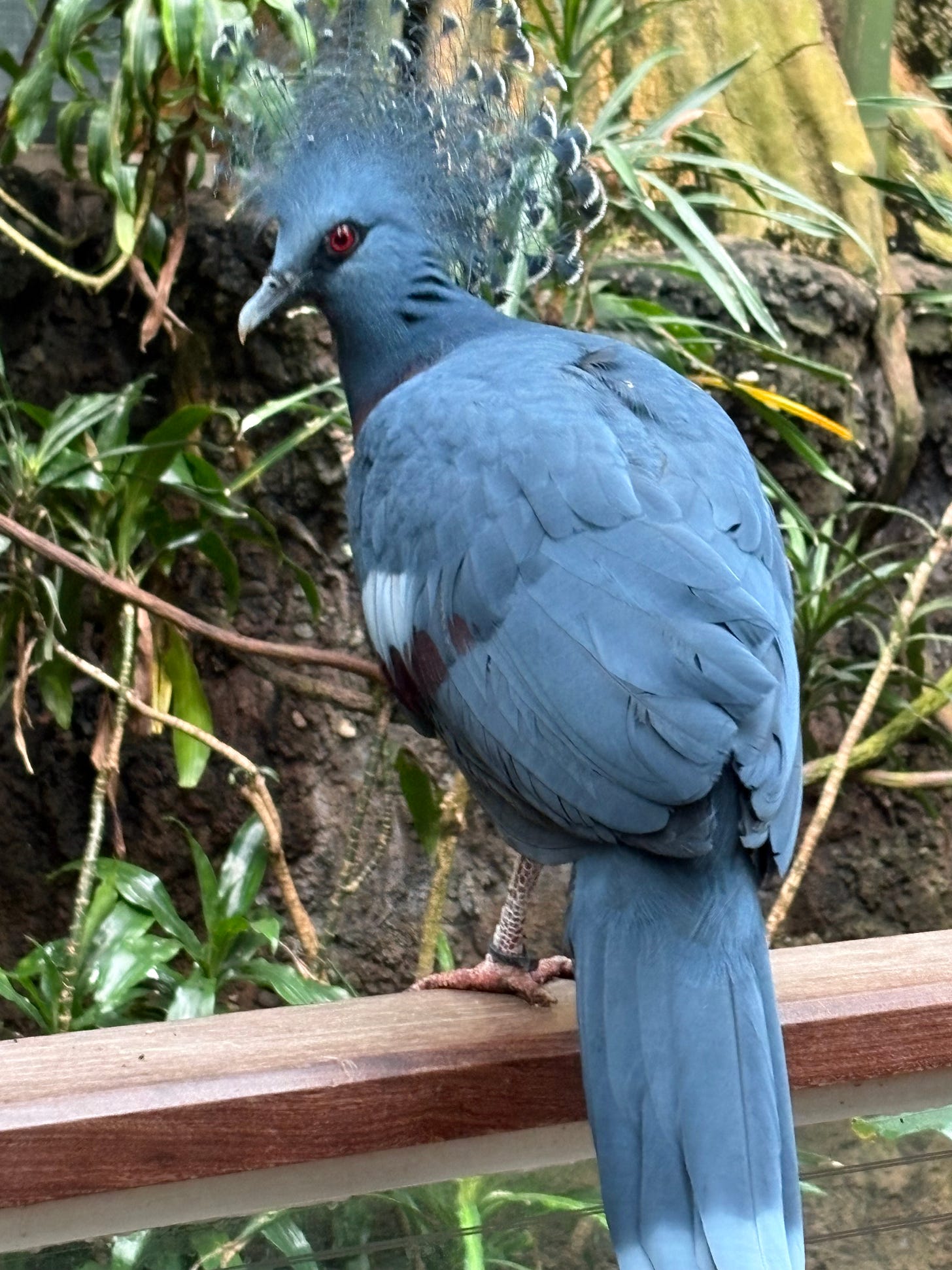 [Victoria Crowned Pigeon – beyond amazing to see such a spectacular bird just flying free within the spacious Tropical Birds Enclosure – see below as well]