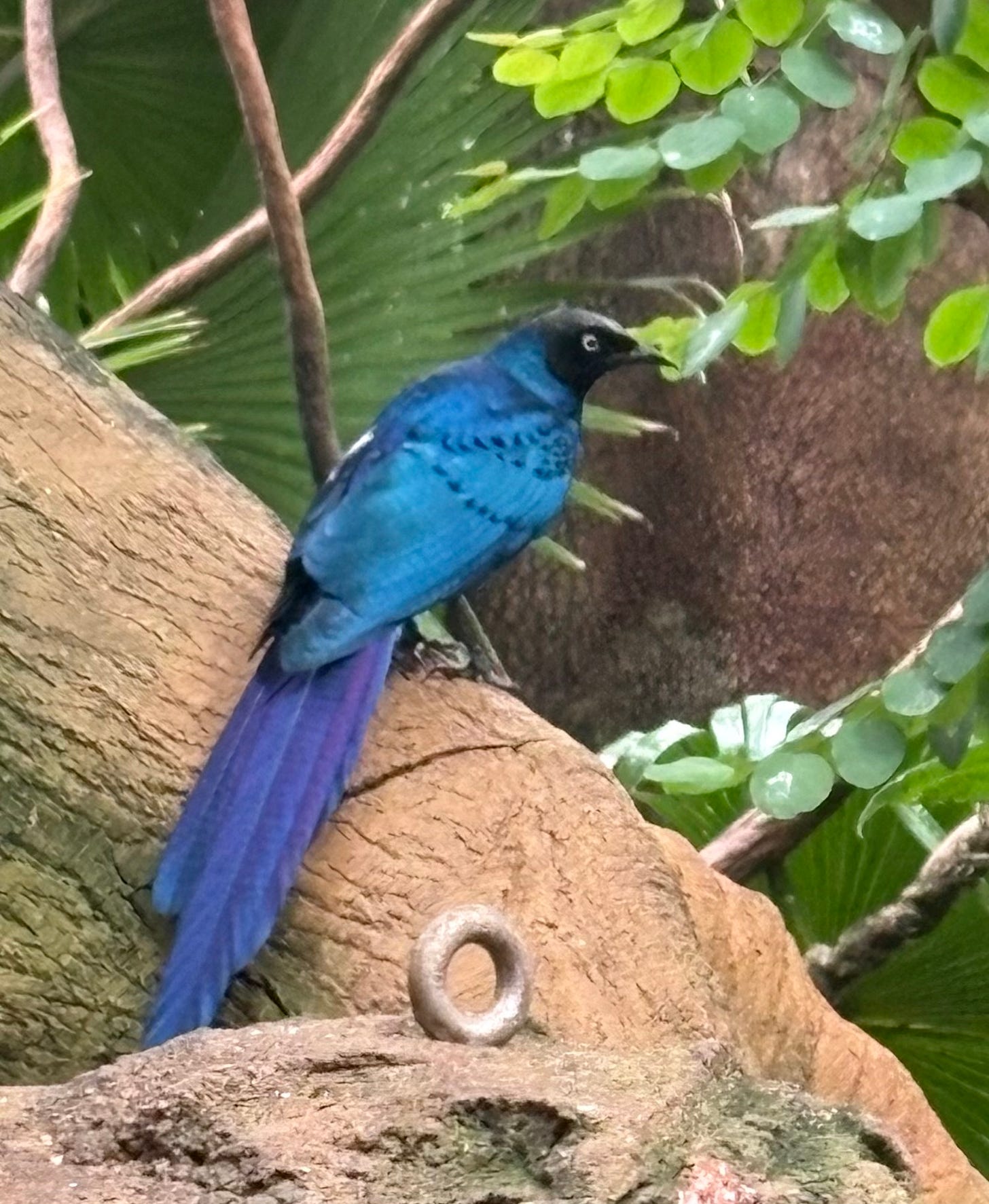 This bird and all the others in this enclosure were entirely cage-free. They were flitting about around the visitors, or calling raucously or making nests. No bars or chicken-wire separating them from us. Dreamlike.
